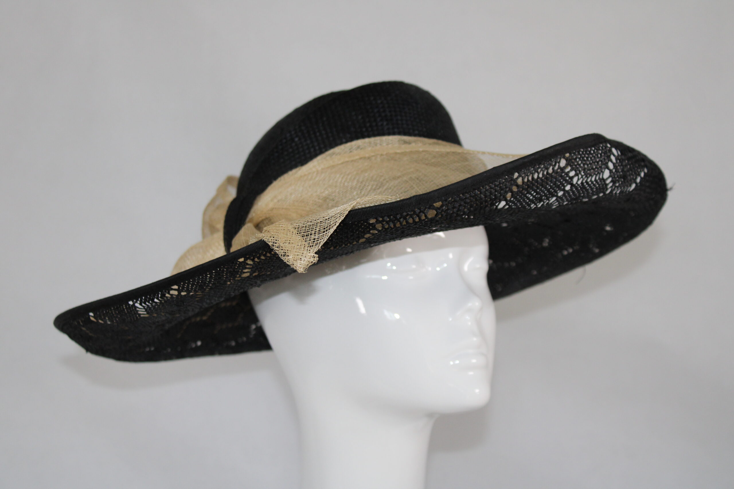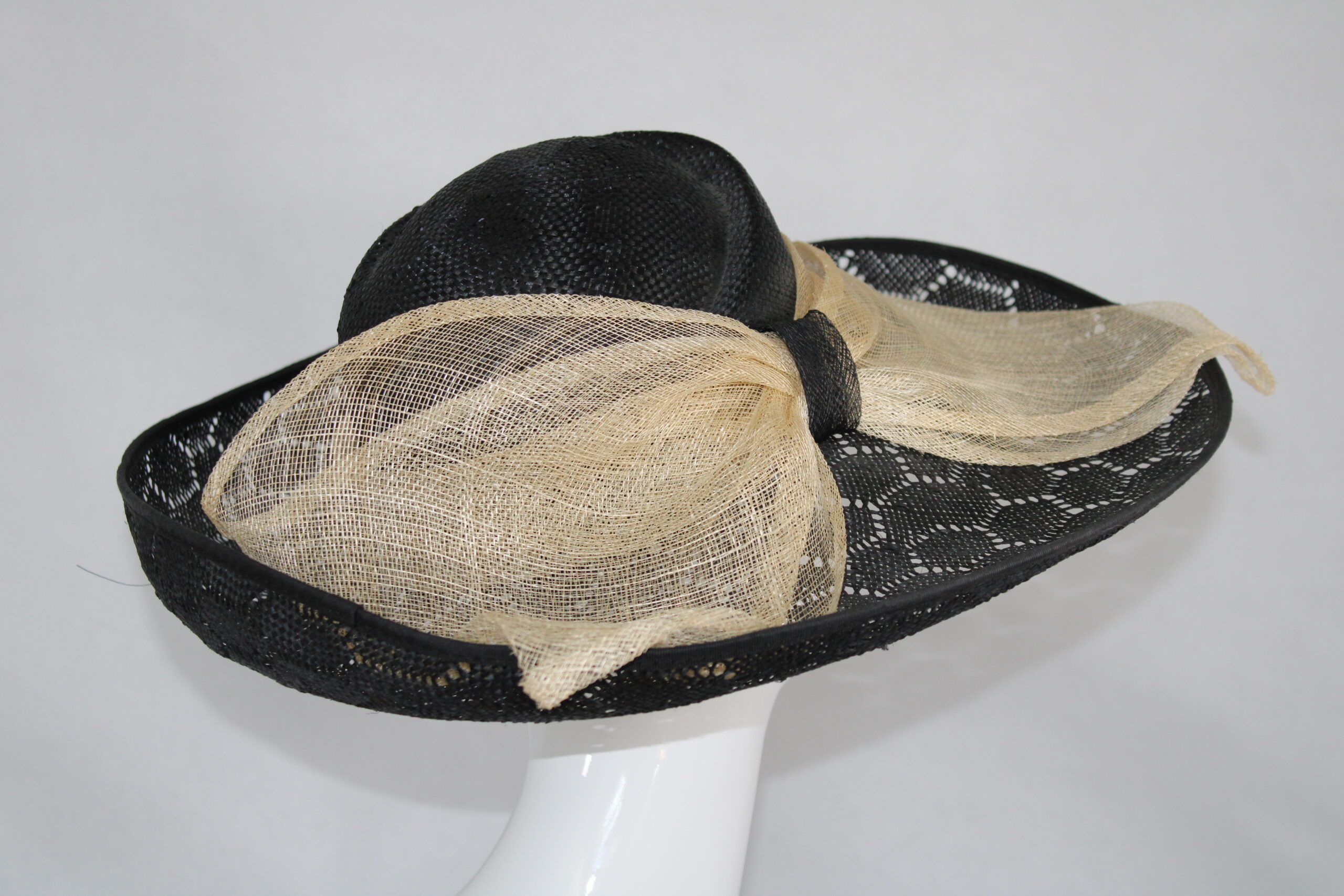 Large black and cream hat with beautiful bow detail